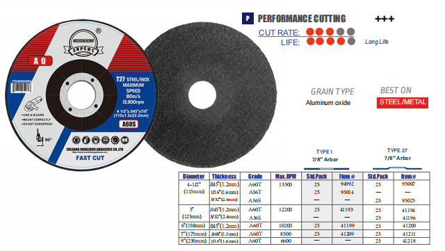 [Performance Line-Industrial Grade] Super Thin Cutting Wheels AO for Metal T41 T42 for Angle Grinders